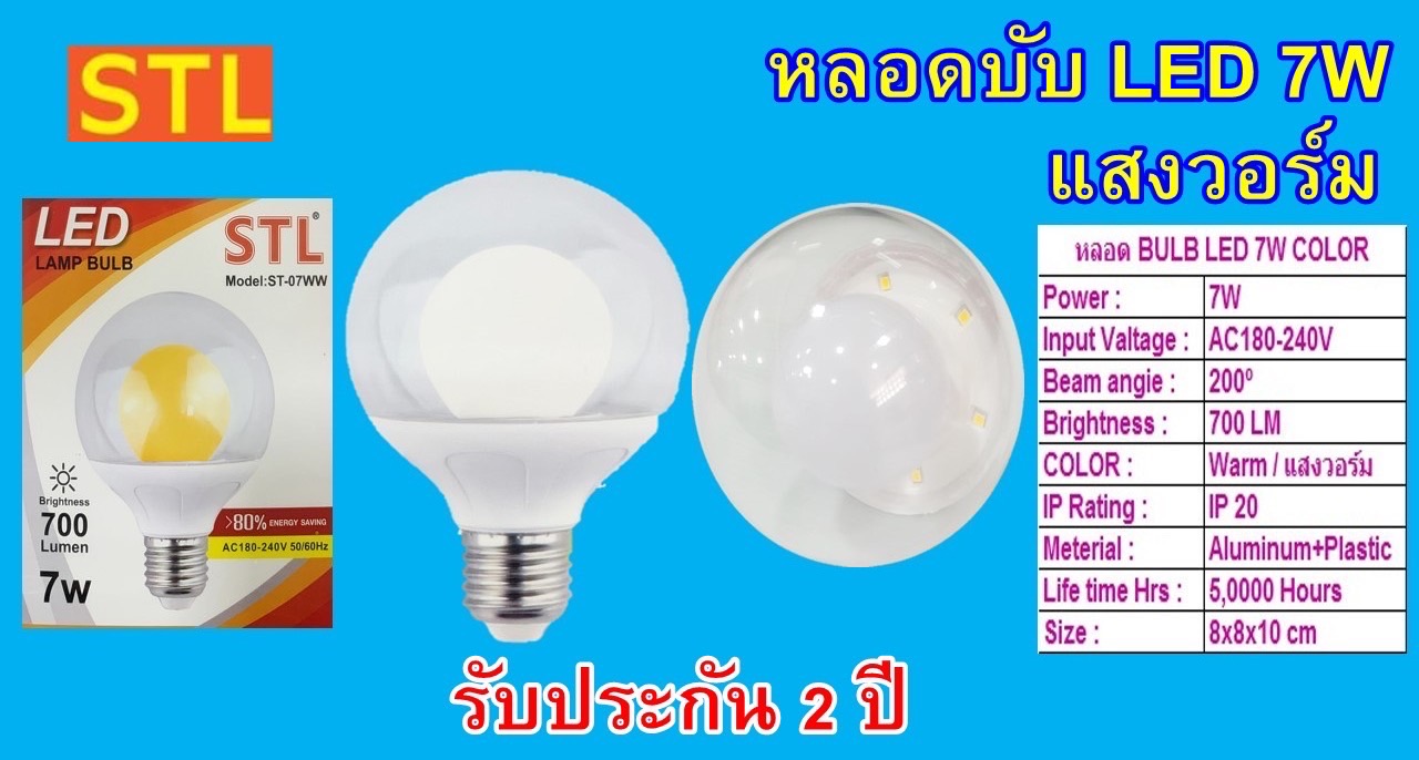 หลอดไฟบับLED 7W สีวอร์มมีพลาสติกครอบTSP