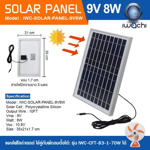 – แผงโซล่าเซลล์ใช้คู่กับพัดลมตั้งโต๊ะรุ่น IWC-CFT-83-1-70W ได้