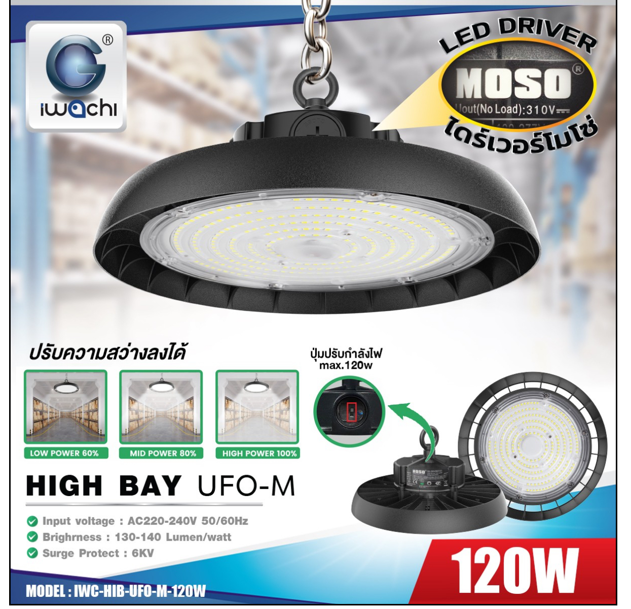💡 High Bay UFO 120W สว่างคุ้ม ปรับกำลังได้ในตัว!