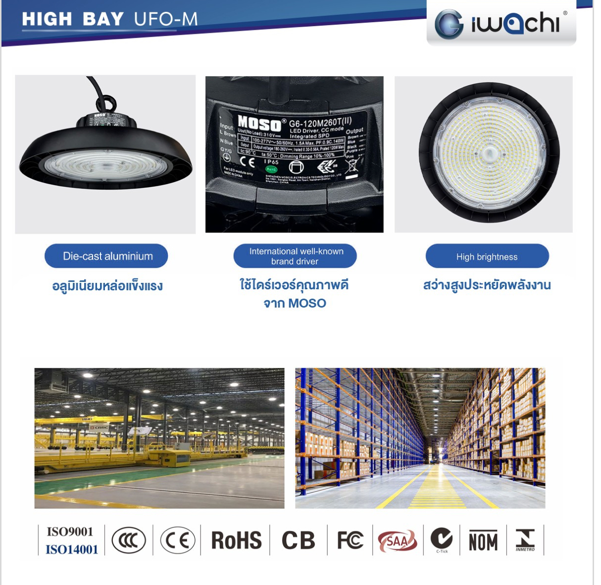 โคมไฟโรงงานคุณภาพสูง ใช้ไดรเวอร์ MOSO