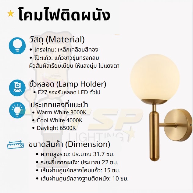 ✔ รองรับหลอด E27 เปลี่ยนง่าย