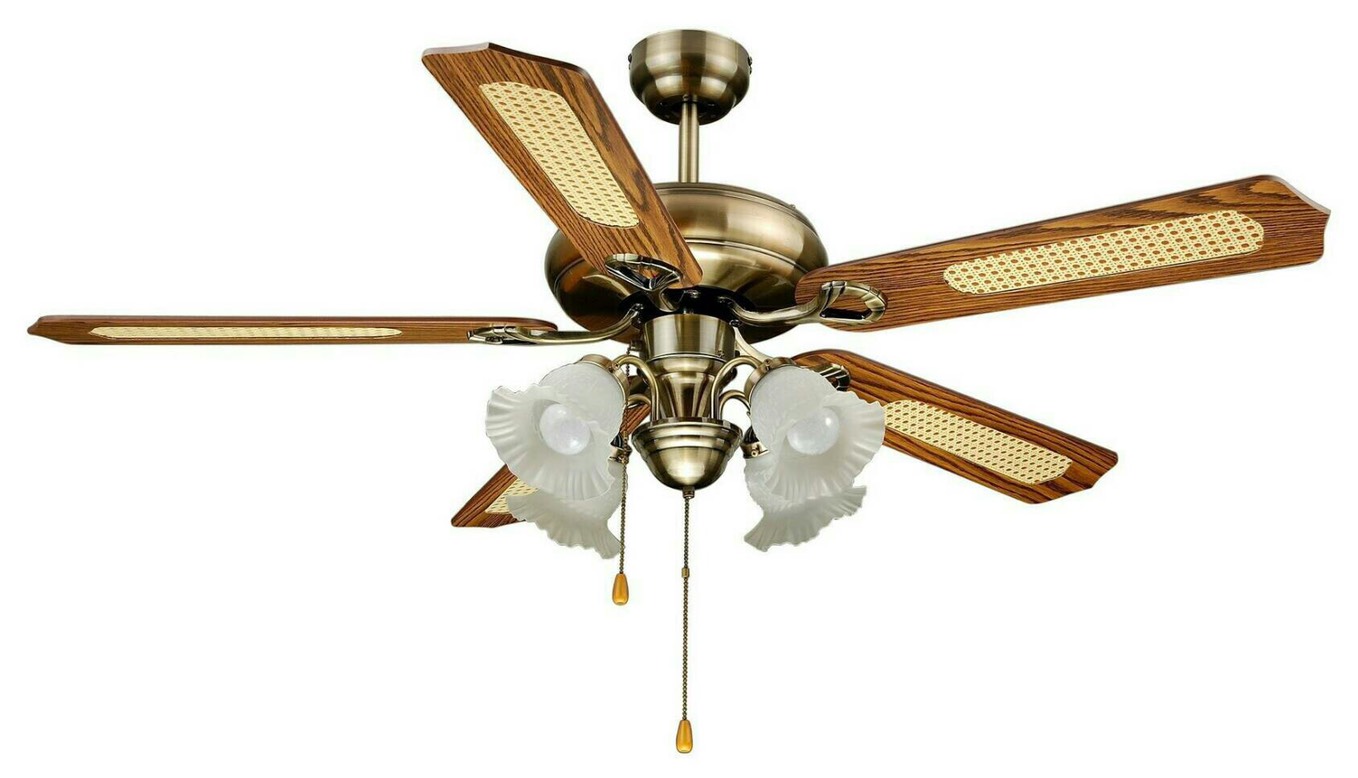 -พัดลม ขนาด 52 นิ้ว 5 ใบพัด ไม้อัด 5 โคมไฟ