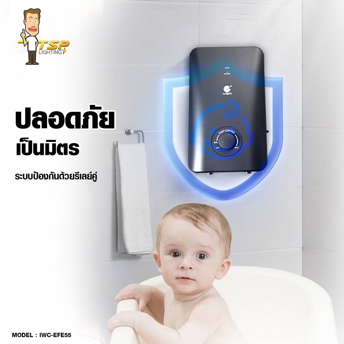 TSP เครื่องทำน้ำอุ่น 5500W พร้อมฝักบัว ปลอดภัย มีระบบป้องกันด้วยรีเลย์คู่ รุ่น EFE55
