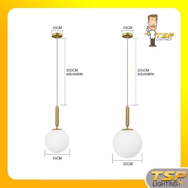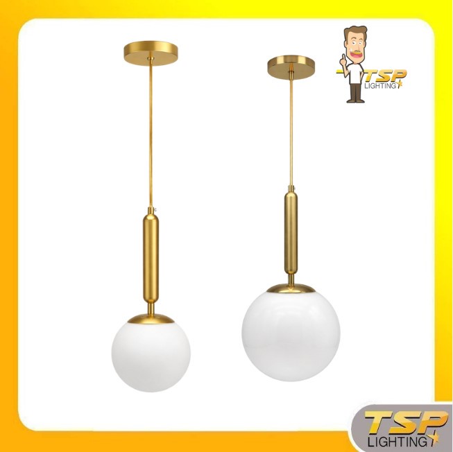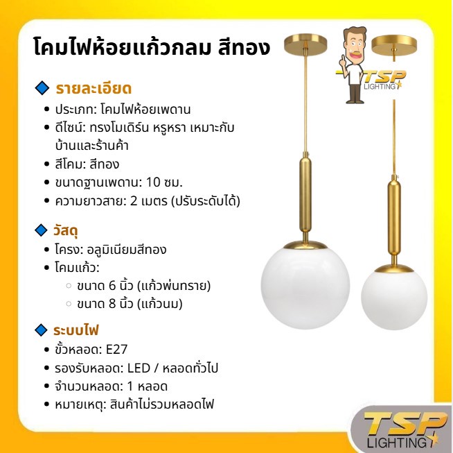 TSP โคมไฟห้อย แก้ว 6″ แก้วพ่นทรายนม สายห้อยสีทอง