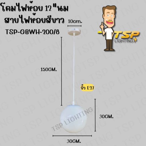 TSP โคมไฟห้อย 12 นิ้วนม สายไฟห้อยสีขาว