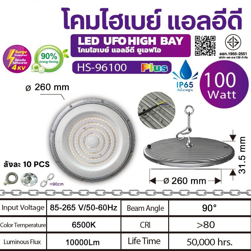 TSP HS โคมไฮเบย์ UFO LED 100W แสงขาว
